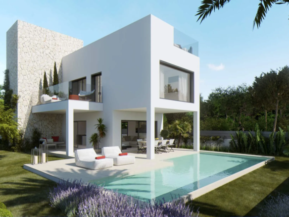 Moderní vila na Mallorce s výhledem na moře, střešní terasou a nekonečným bazénem v Bonaire