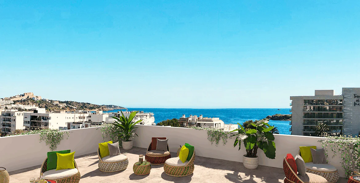 Playa d’en Bossa | Ibiza – Exkluzivní apartmán Playa d’en Bossa s terasou a střešními výhledy na moře