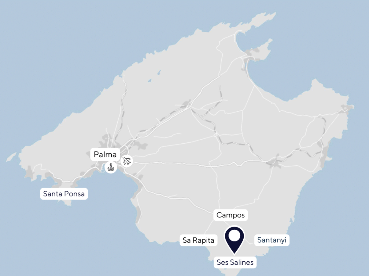 Ses Salines je okouzlující vesnice na jihu Mallorky, známá svým tradičním charakterem, malebnou krajinou a blízkostí nádherných pláží, jako je Es Trenc. Oblast je proslulá solnými poli, odkud obec získala své jméno, a také uvolněnou, autentickou atmosférou. Díky skvělým možnostem stravování, přírodní kráse a snadné dostupnosti okolních atrakcí, jako je souostroví Cabrera, je Ses Salines ideálním místem pro ty, kteří hledají klid i středomořský šarm.