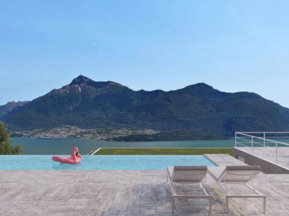 Appartamento con giardino sul Lago di Como con vista panoramica e piscina