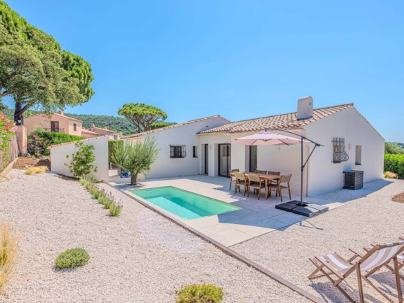 St. Tropez – Bungalow collinare con vista mare, più terrazze e piscina privata