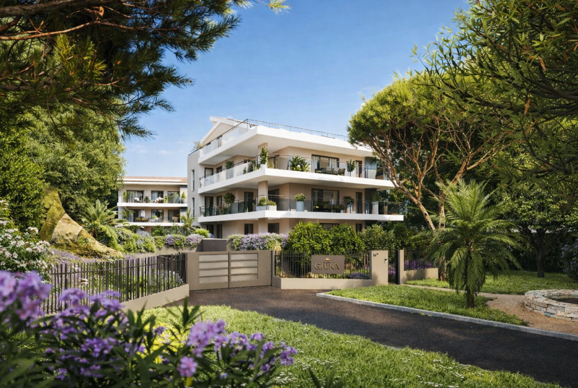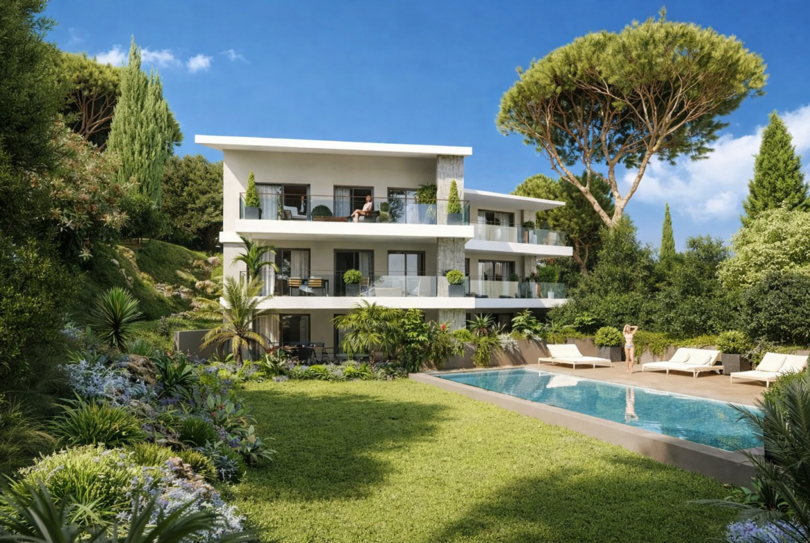 Appartamento con giardino di nuova costruzione, dotato di terrazza soleggiata, piscina condivisa e posizione premium a pochi passi dalla spiaggia di Cannes.