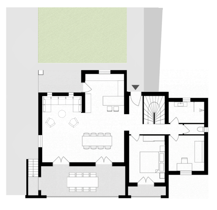 Ampi spazi esterni esposti a sud, parzialmente coperti