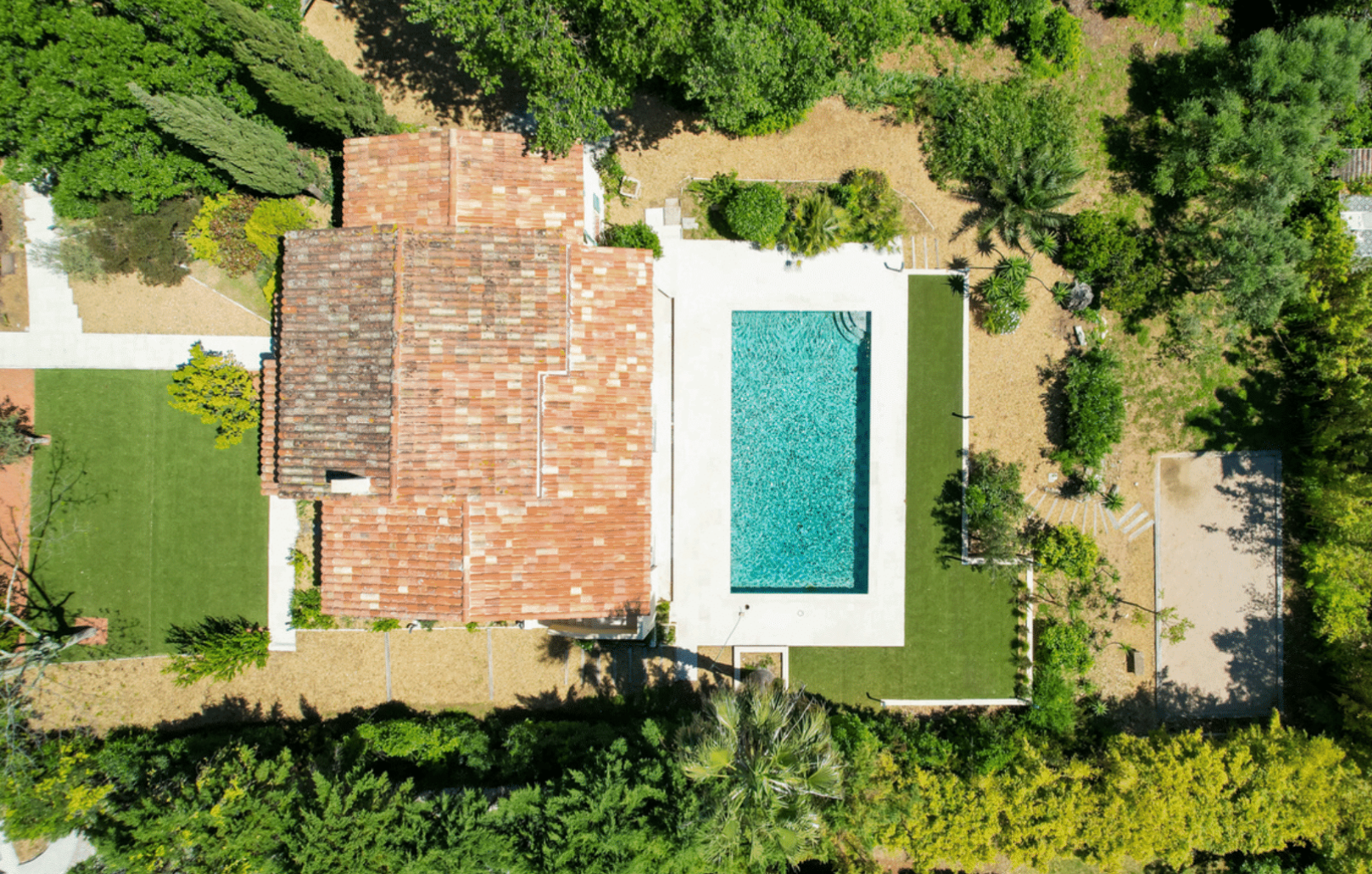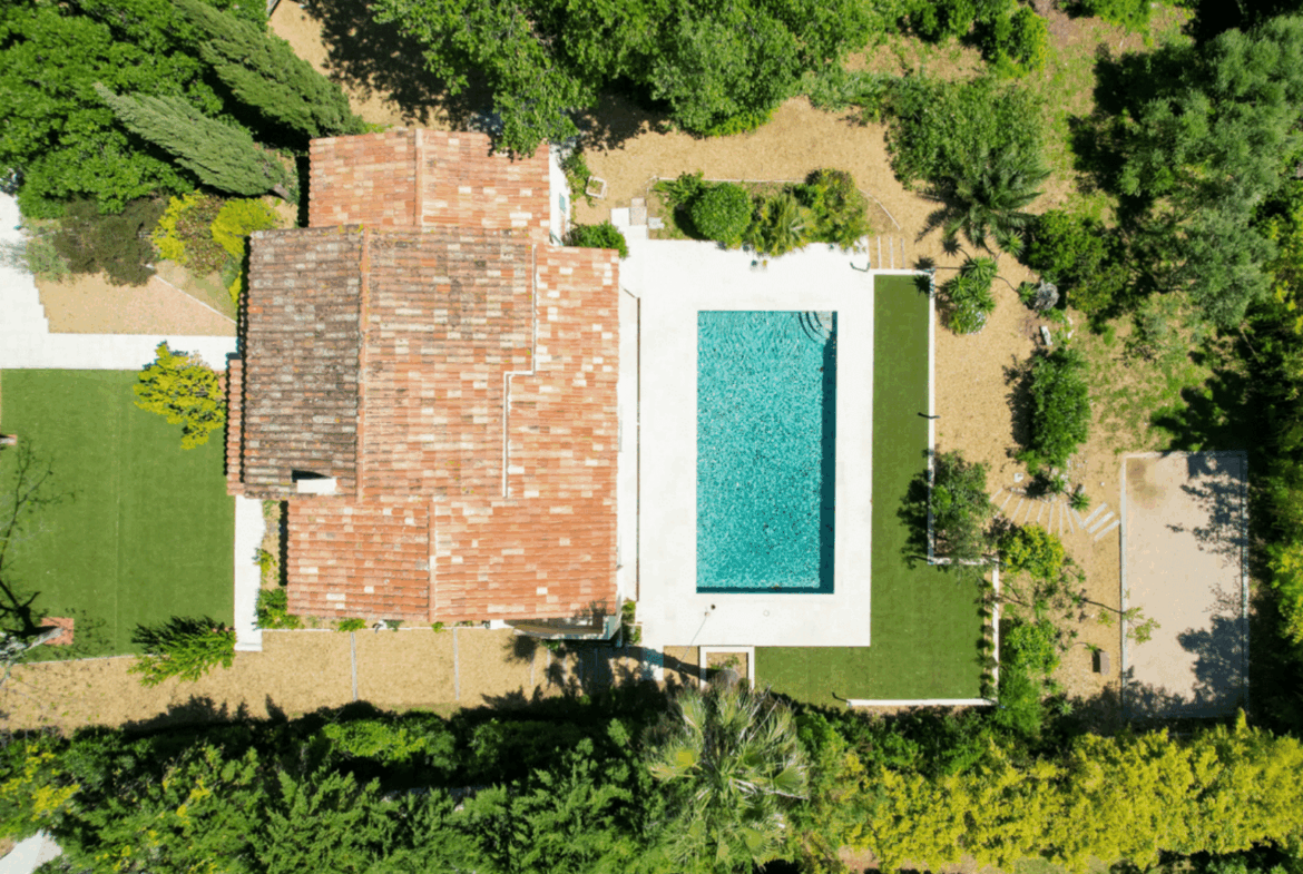 Questa villa in stile mediterraneo, situata sulle colline di Grimaud, offre privacy, vista mare e ampi spazi esterni. Una piscina, un campo da bocce, un’area barbecue e pranzo creano l’ambiente perfetto per famiglia e amici, mentre una sala cinema, una sala giochi e un’area benessere assicurano comfort tutto l’anno.