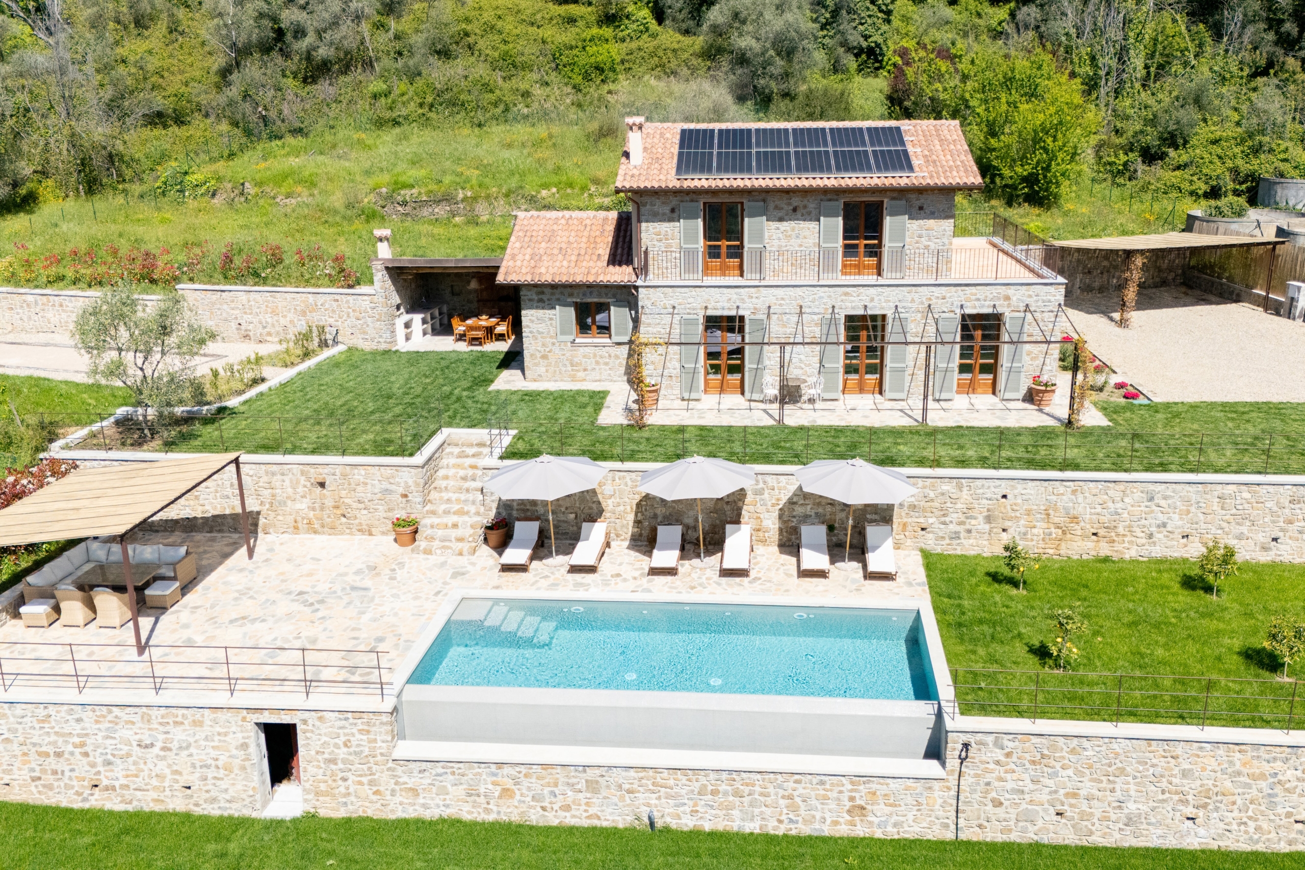 Elegant villa set on a 4,200 m² plot above Apricale, offering infinity pool, outdoor kitchen with pizza oven, and authentic Mediterranean living just minutes from the coast.