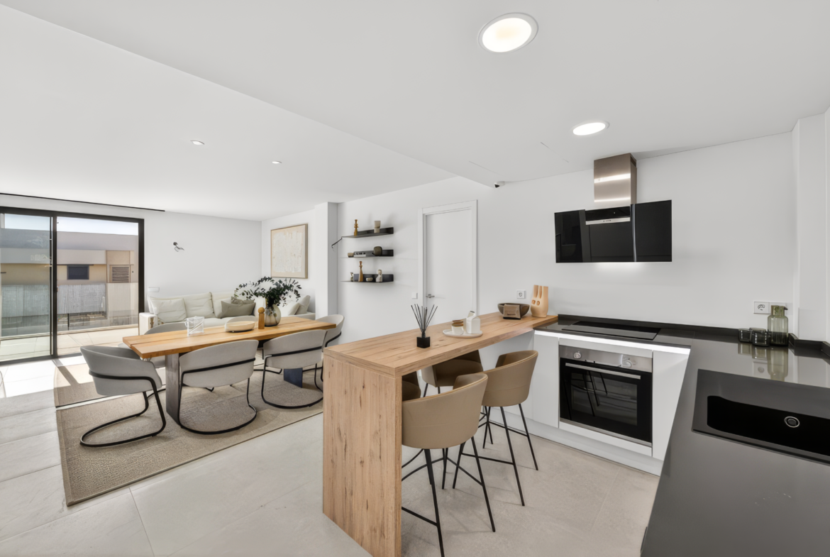 Located near Sa Rápita on the sought-after south coast of Mallorca, this exclusive new-build garden apartment is part of a high-quality residential complex designed for relaxed Mediterranean living. The property enjoys a quiet setting while being just 15 minutes from the natural beach of Es Trenc, known for its turquoise waters and fine sand.