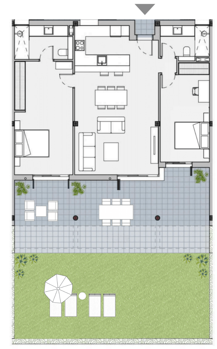 Stylish garden apartment with sun-drenched south-facing terrace, pool and wellness, just minutes from Es Trenc